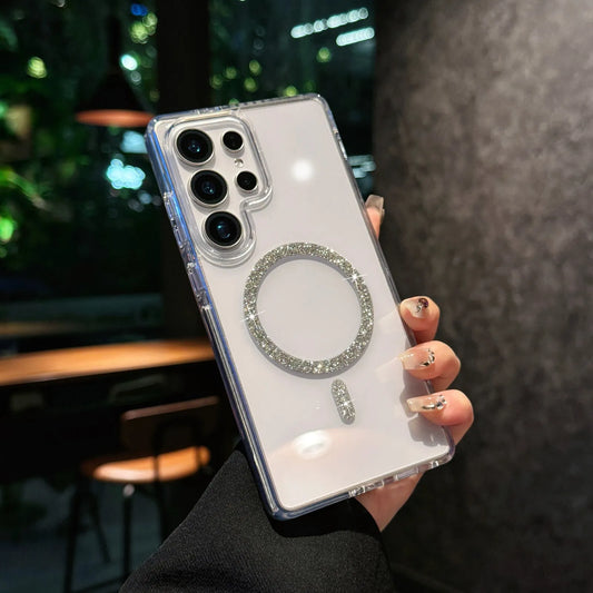 Glitter Clear Phone Case Magnetic for Magsafe for Samsung Galaxy S25 Ultra S24 Plus Transparent Shockproof Hard Cover