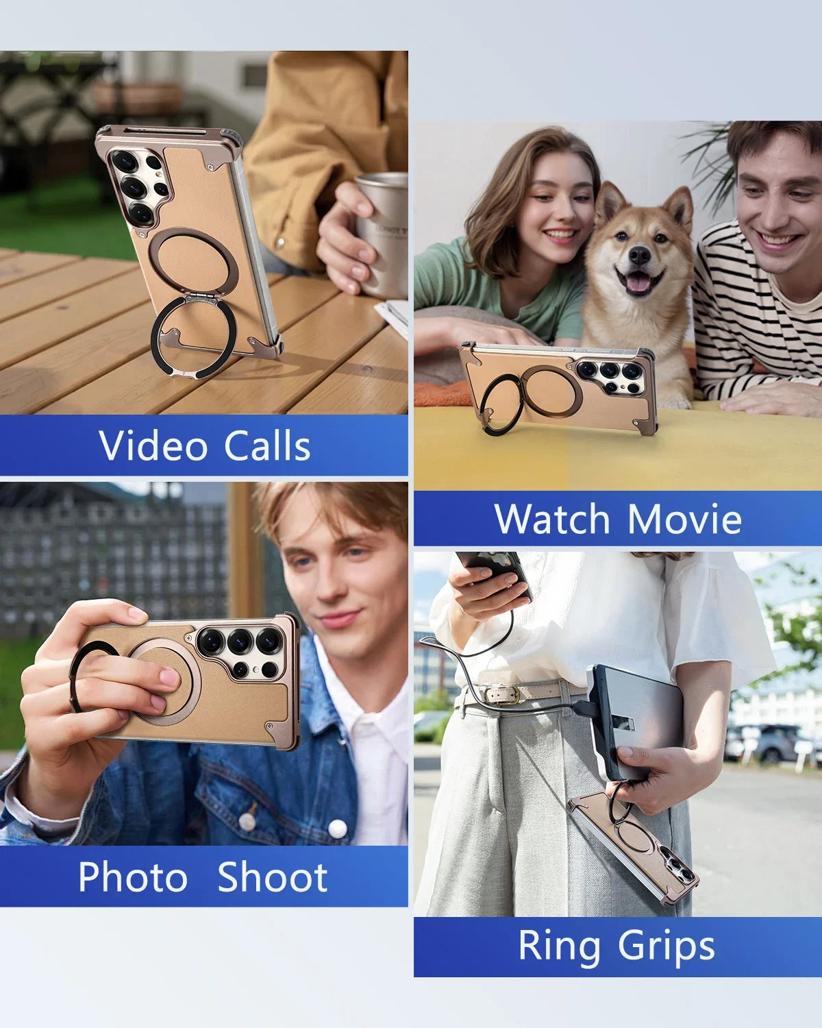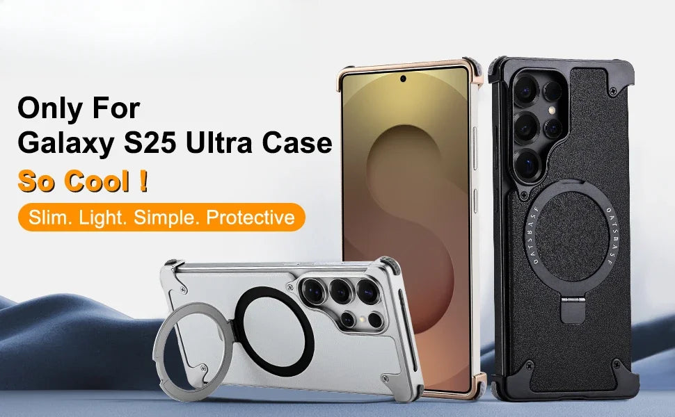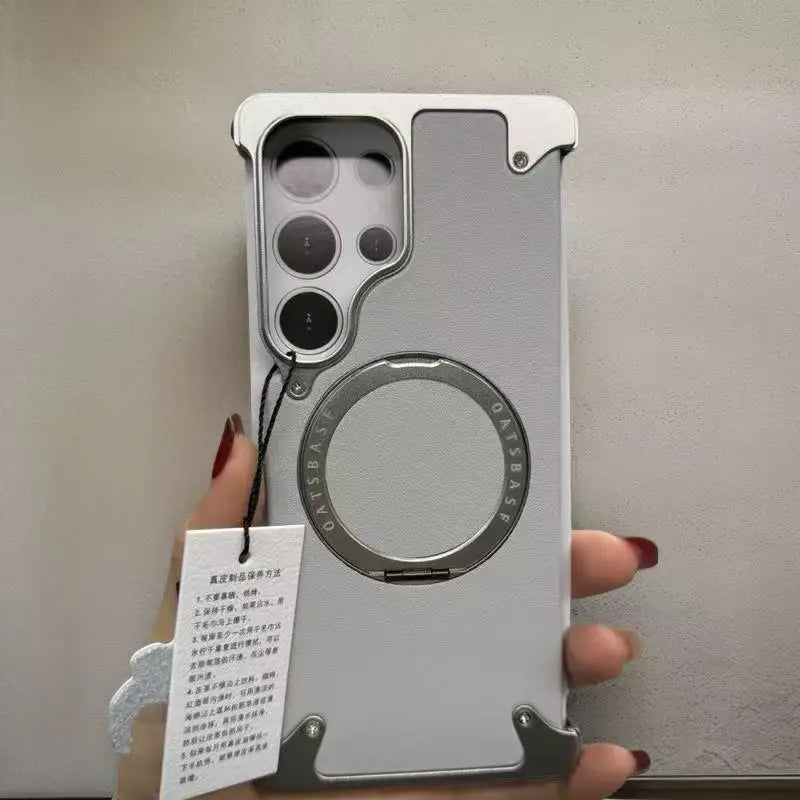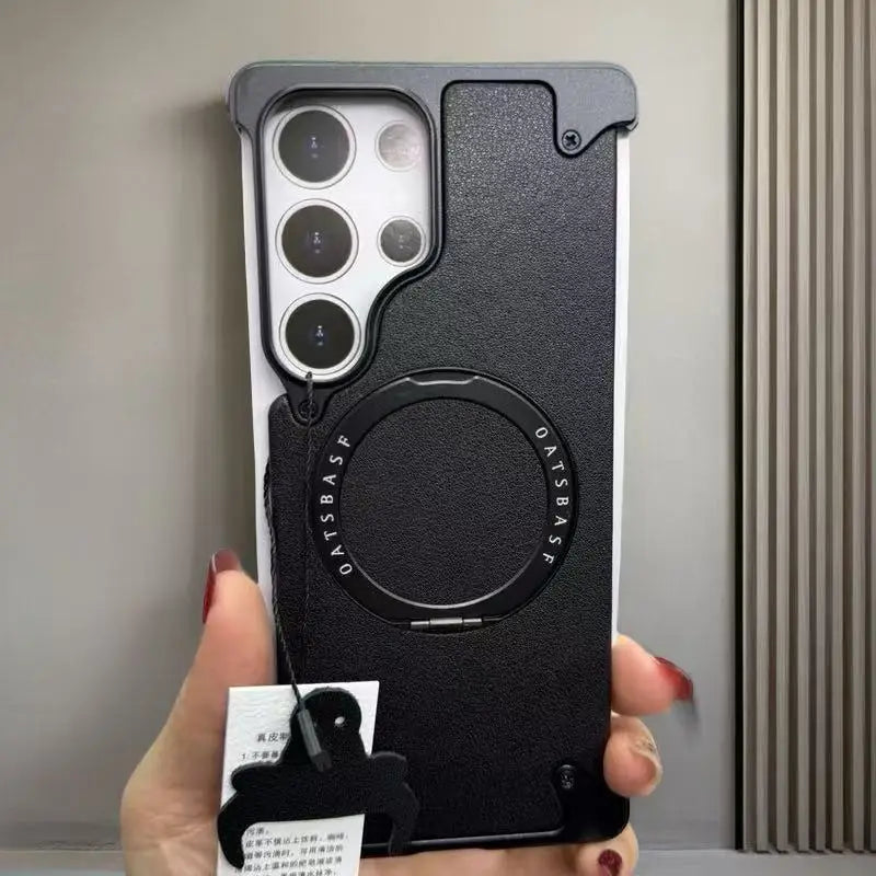Magnetic Frameless Phone Case for Samsung Galaxy S25Ultra S24Ultra with 360° Rotatable Stand Genuine Leather Bumper Phone Cover